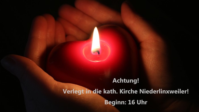 Das Adventskonzert wird in die Kath. Kirche Niederlinxweiler verlegt. Das Konzert beginnt bereits um 16.00 Uhr.